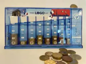 The "Eurocoin Bank" coin sorter automatically places coins in the correct stack. Pre-printed on the front, it is also possible to design your own print in 4 colors or digital printing (four-color). Poul Willumsen also offers an attractive gift box as individual packaging. A promotional gift that is ideal for banks and investment companies, for example.