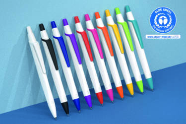 The first ballpoint pen to receive the German "Blue Angel" eco-label, the Schneider Reco impresses with its particularly environmentally friendly and resource-efficient production. The barrel is made of 92% recycled plastic. Its sleek design, combined with its satin-matte surface, gives it a simple and elegant look. The Reco is equipped with the large-capacity Eco 725 M refill (made of recycled plastic).